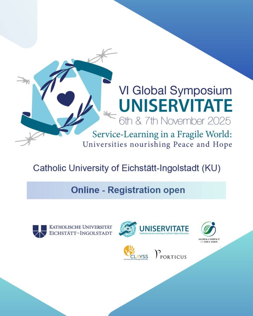 ¡INSCRIPCIONES ABIERTAS! VI Simposio Global Universitate. “Aprendizaje-servicio en un mundo frágil: Universidades que nutren la Paz y la Esperanza”, en Alemania. Universitate, nuestro programa de aprendizaje-servicio solidario en Instituciones Católicas de Educación Superior invita a la sexta edición del Simposio Global.