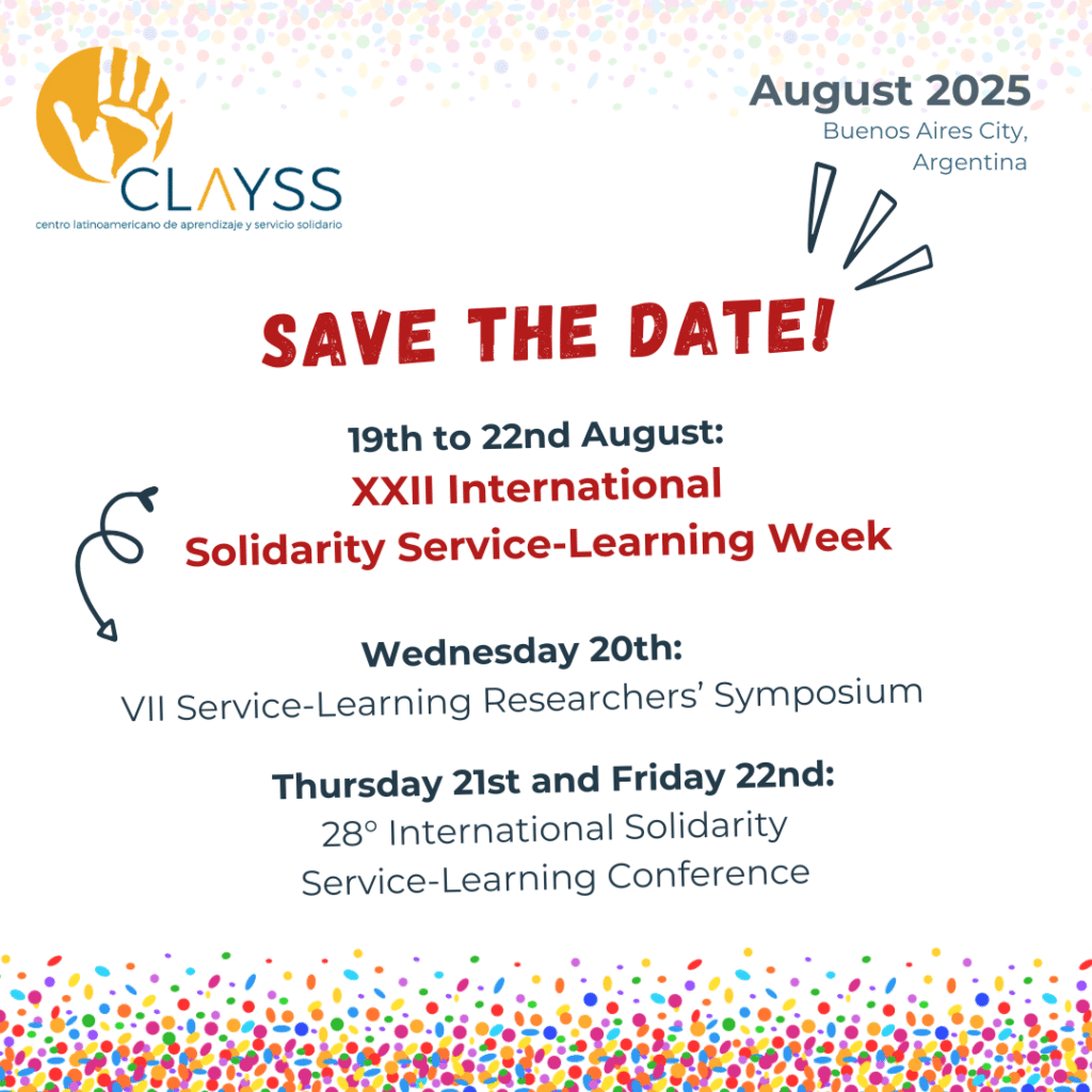 The VII Service-Learning Researchers’ Symposium is scheduled for Wednesday 20th August at the Faculty of Dentistry of the University of Buenos Aires, while the 28th International Solidarity Service-Learning Conference will take place on Thursday 21st and Friday 22nd August, a free onsite event (Pontifical Catholic University of Argentina, UCA), requiring pre-registration, as usual.