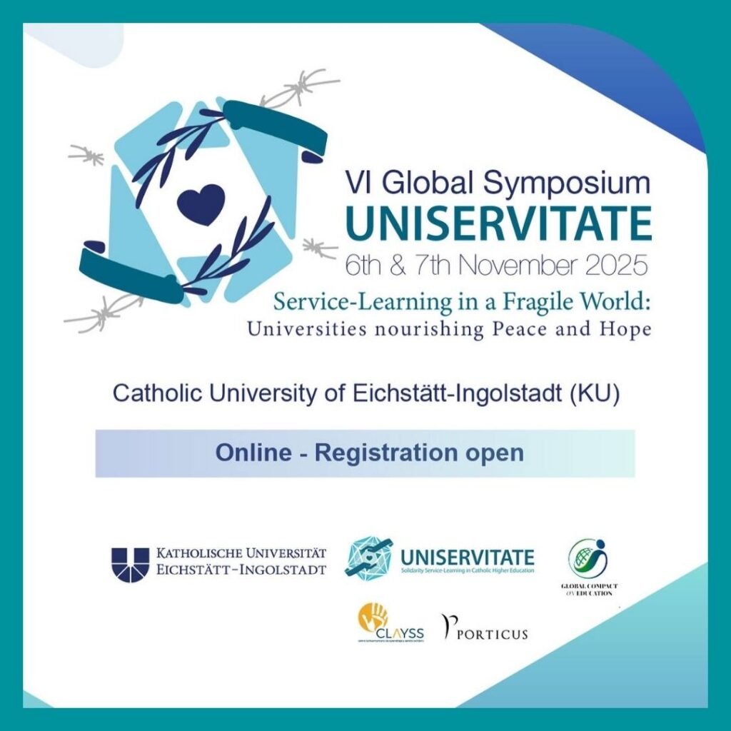 Ya está abierta la inscripción a esta nueva edición del Simposio Global, que se realizará en Alemania los días 6 y 7 de noviembre de 2025. Coorganizado por Uniservitate (Porticus y CLAYSS) y la Universidad Católica de Eichstätt-Ingolstadt (), será en modalidad híbrida a nivel global: presencial para los integrantes del nodo regional de Europa Central y del Este y de Medio Oriente (CEE&ME) y de Asia y Oceanía (A&O), y virtual para otras regiones del mundo.